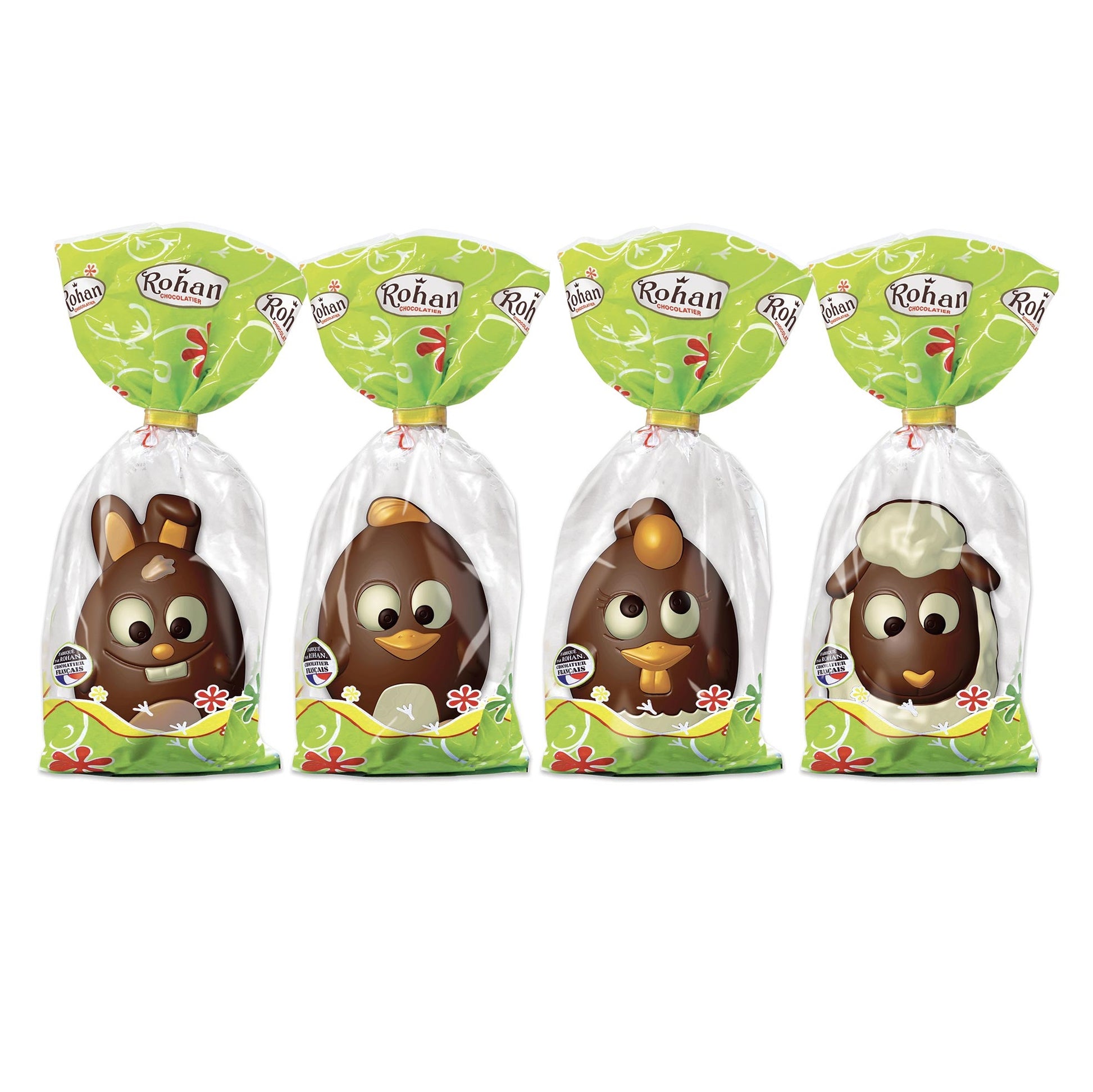 Présentés en cartons assortis, ces sujets en chocolat au lait sont parfaits pour une distribution lors de vos animations de Pâques.